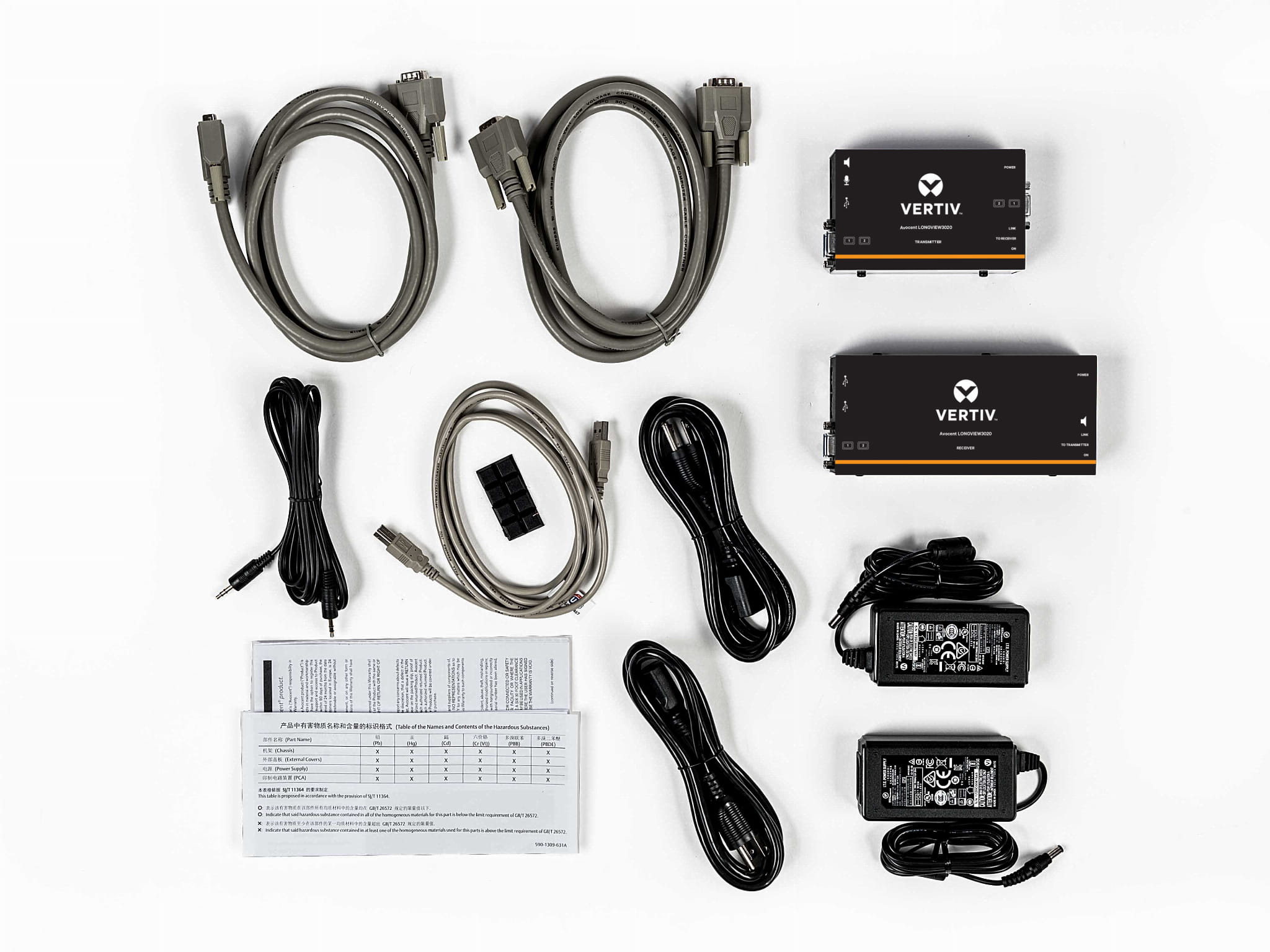 Vertiv Avocent LV3020P-202, Nadajnik i odbiornik, Przewodowa, 300 m, Cat5, Cat5e, Cat6, Cat7, 1920 x 1200 px, Niebieski