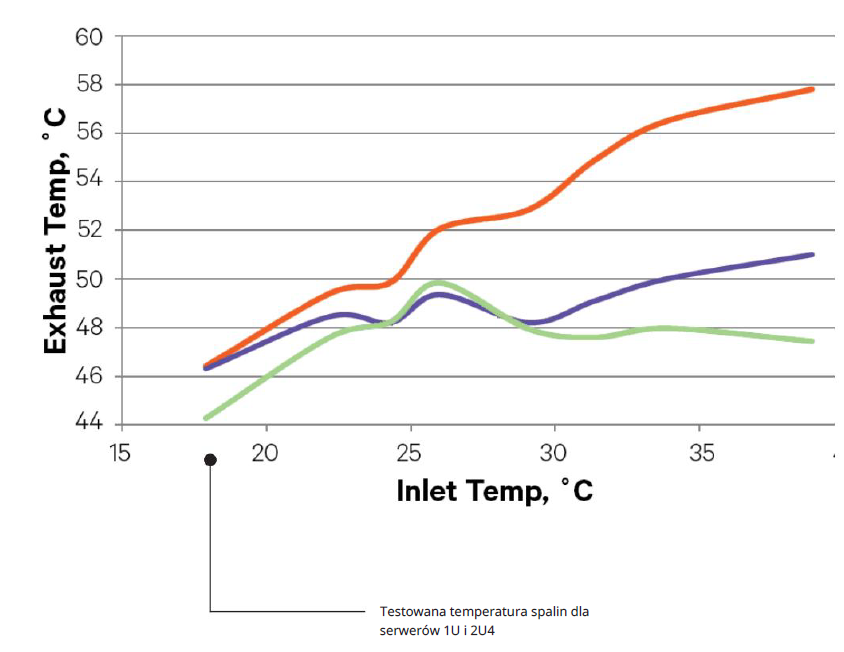 Ale w zależności od wyboru TORS, w całym centrum danych może wystąpić wiele potencjalnych konfliktów w topologii Hot Aisle — Cold Aisle. Na poniższym obrazie termowizyjnym przełącznik znajdujący się na górze szafy odprowadza gorące powietrze do zimnego korytarza, co powoduje dwa problemy:
