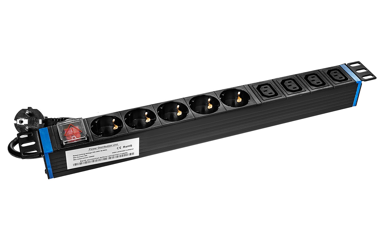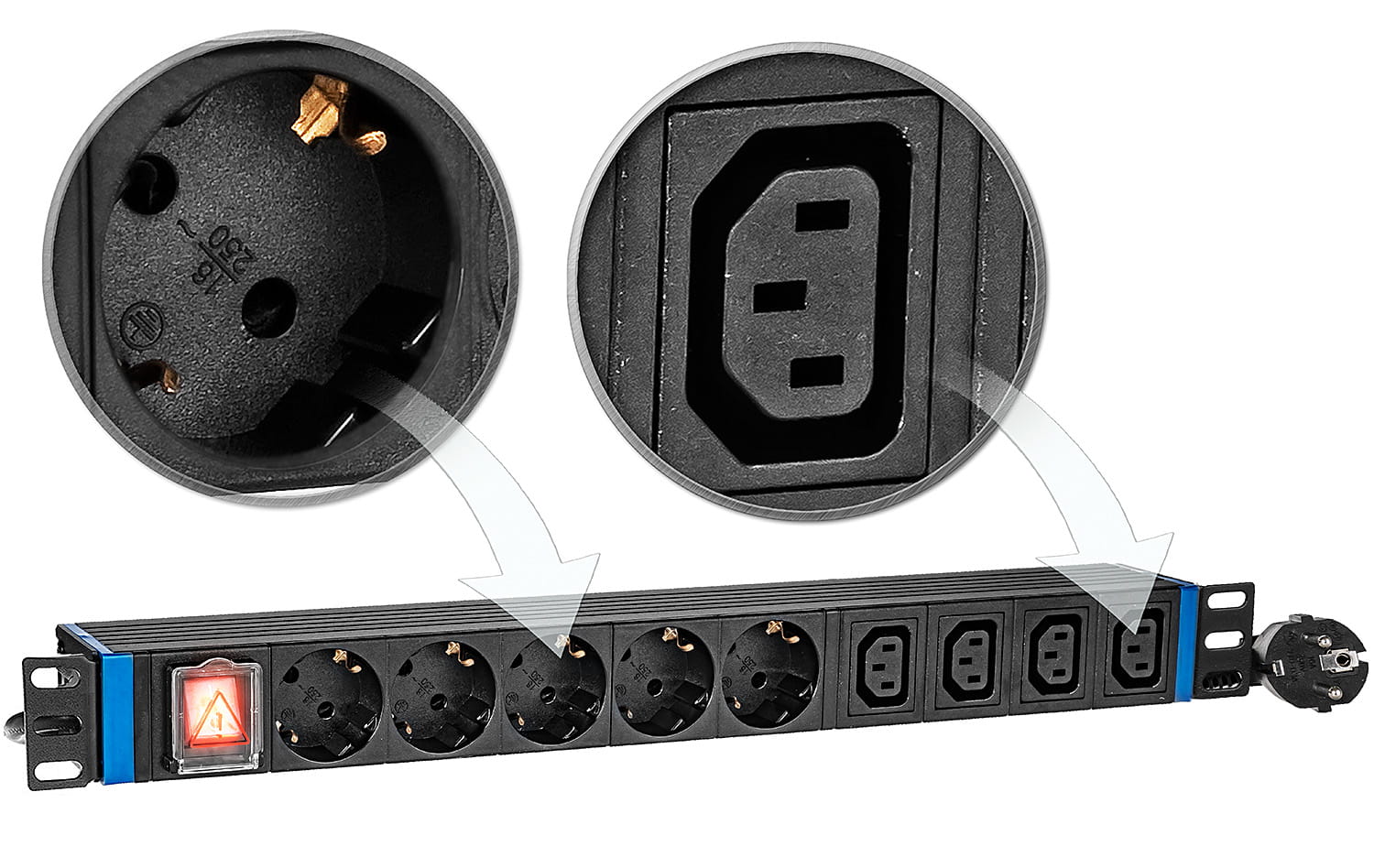 9GN-S-C13-P - listwa zasilająca 19" z włącznikiem - 5 gniazd SCHUKO i 4 gniazda C13