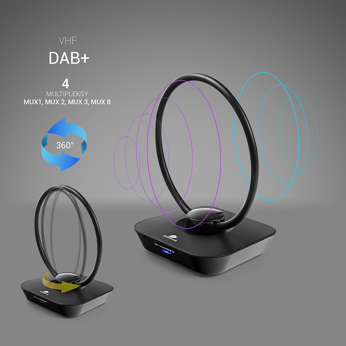 Antena pokojowa DVB-T2 Spacetronik Locus TV zasilacz 45dB