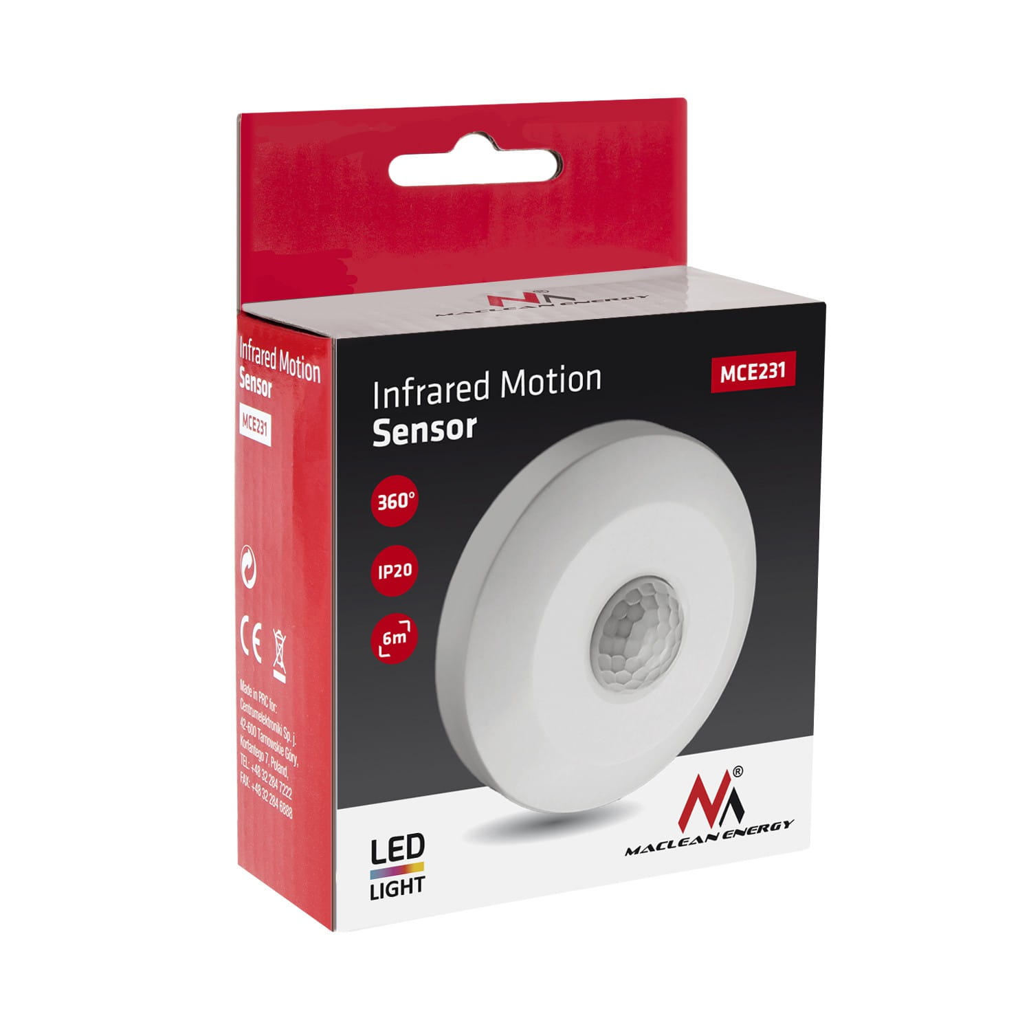 Zestaw zawiera- Czujnik ruchu PIR sensor sufitowy Maclean Energy MCE231
