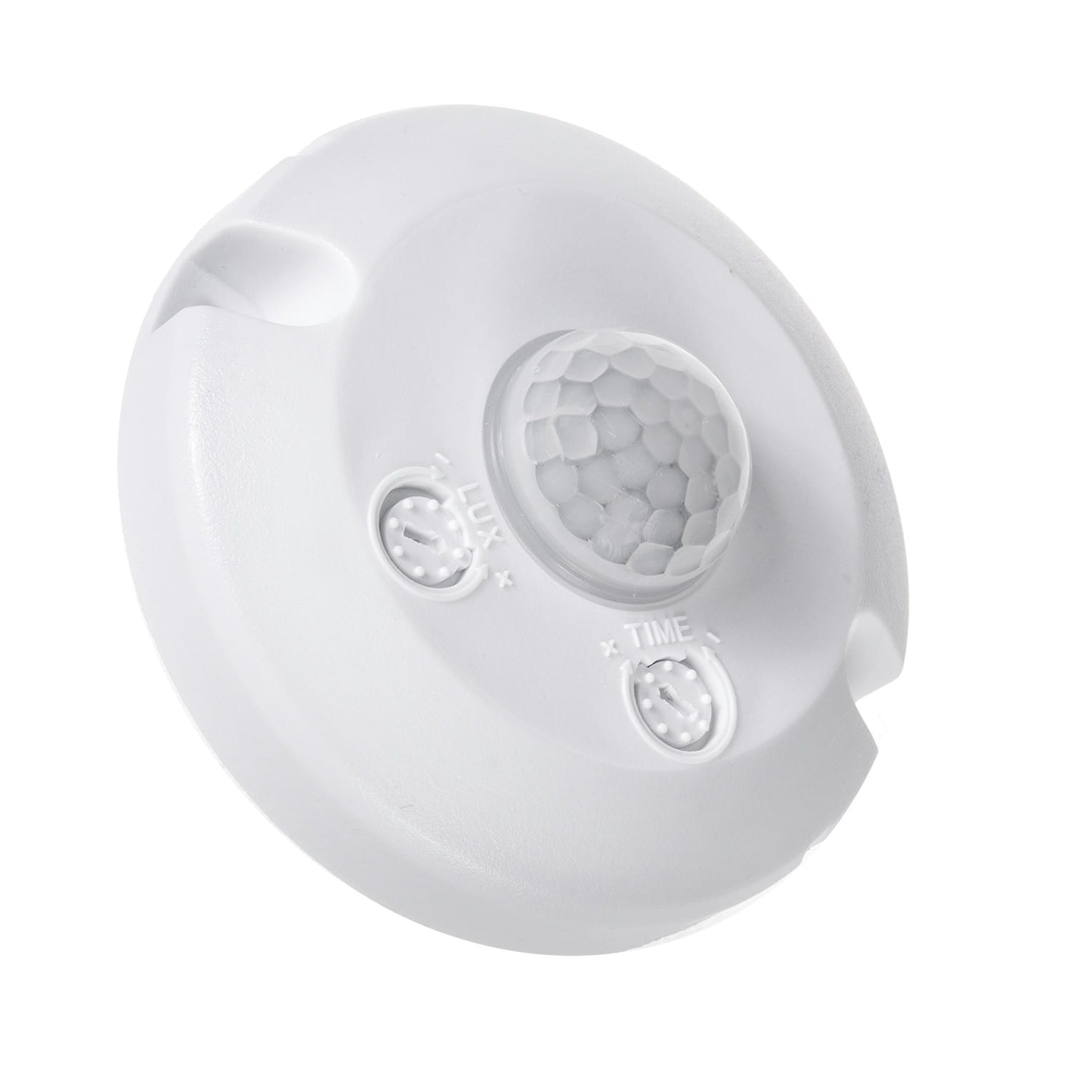 - Czujnik posiada 2 pokrętła: pokrętło LUX umożliwia regulację wartości progowej natężenia oświetlenia (dzięki tej właściwości możemy przystosować go do działania tylko w okresie od zmierzchu do świtu) oraz pokrętło TIME, dzięki któremu możliwa jest regulacja czasu podtrzymania załączenia