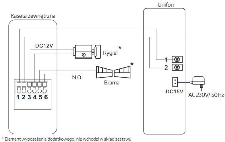 - Ilość przewodów łączących panel zewnętrzny i unifon: 2