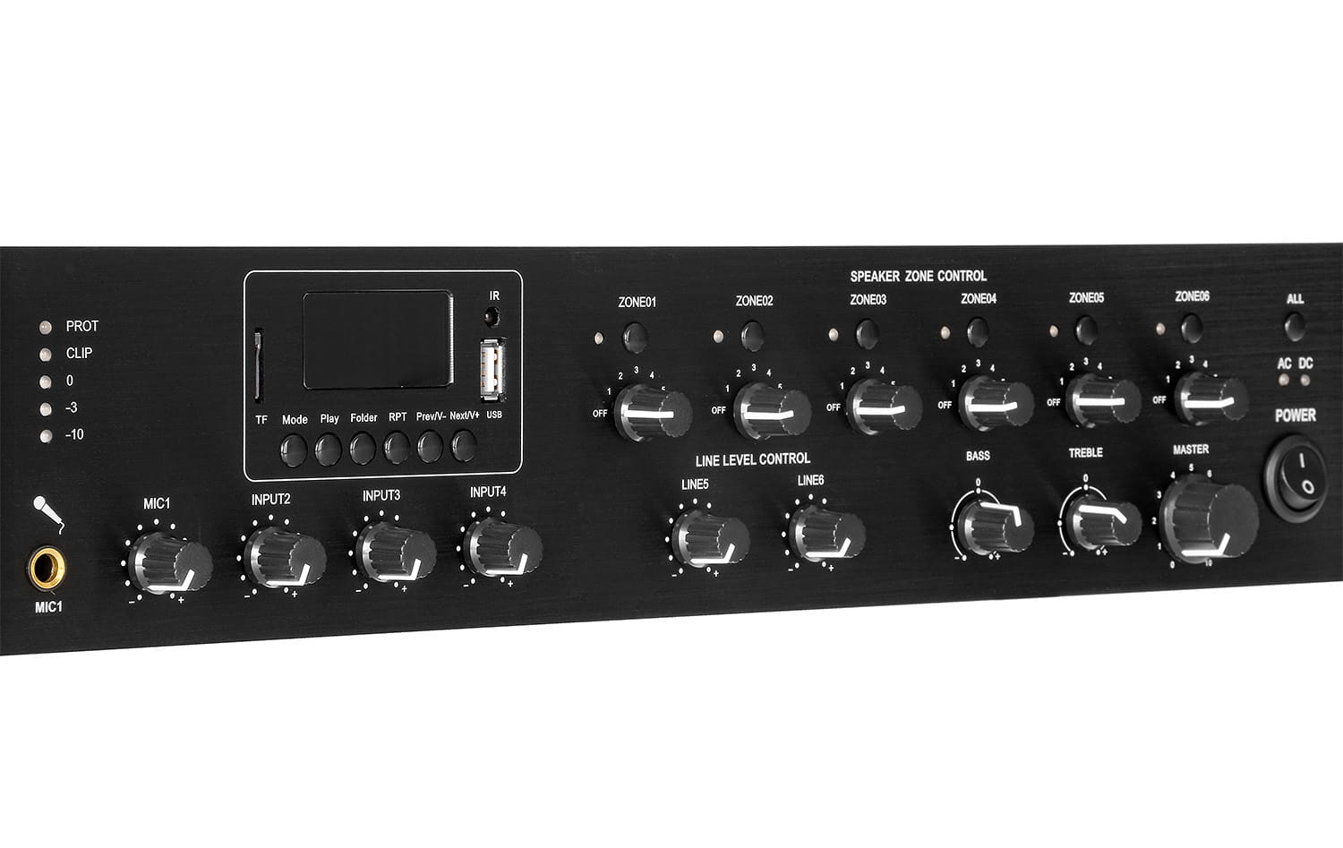 - wyjścia linii głośnikowych: 4~16Ω, 70V, 100V