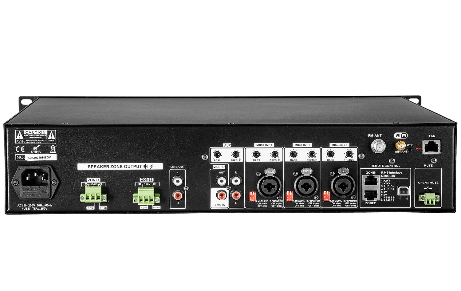 - wyjścia linii głośnikowych: 8~16Ω, 100V