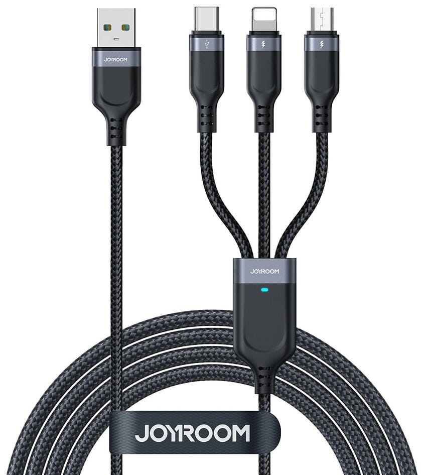 Kabel 3w1 USB-A / USB-C micro-USB Lightning Joyroom S-1T3018A18 30cm 3.5A w oplocie czarny
