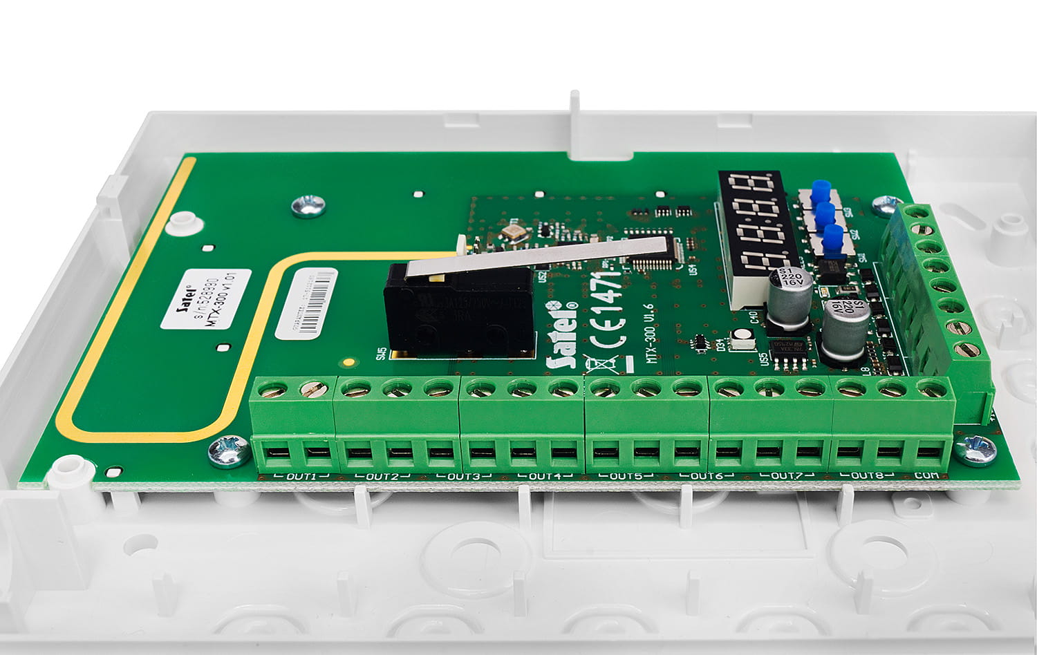 - styk sabotażowy reagujący na otwarcie obudowy