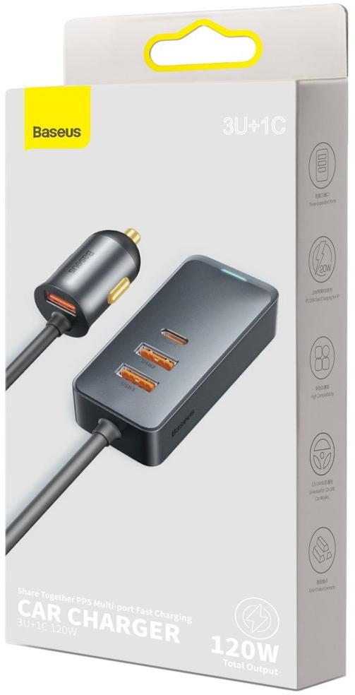 ŁADOWARKA SAMOCHODOWA NA PRZEWODZIE Baseus Share Together 120W 3A 3x USB-A 1x USB-C PD 20W QC 3.0