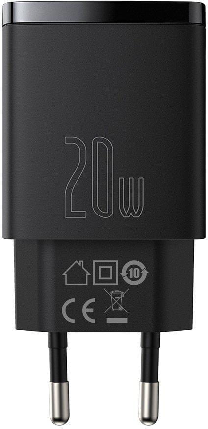 ŁADOWARKA SIECIOWA Baseus Compact Quick Charger CCXJ-B01 20W 1x USB-A 1x USB-C PD 3.0 QC 3.0 CZARNA