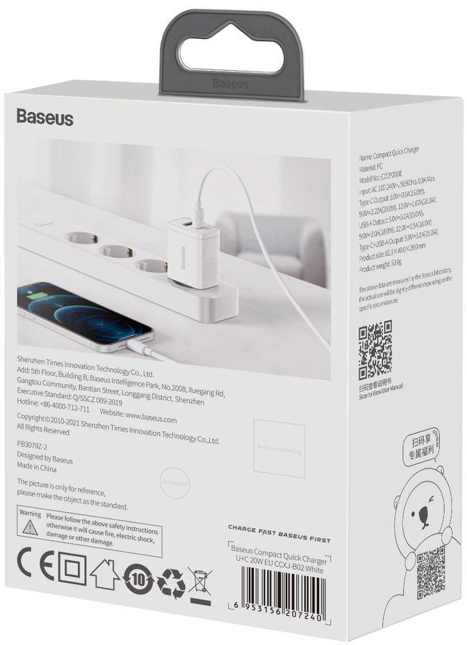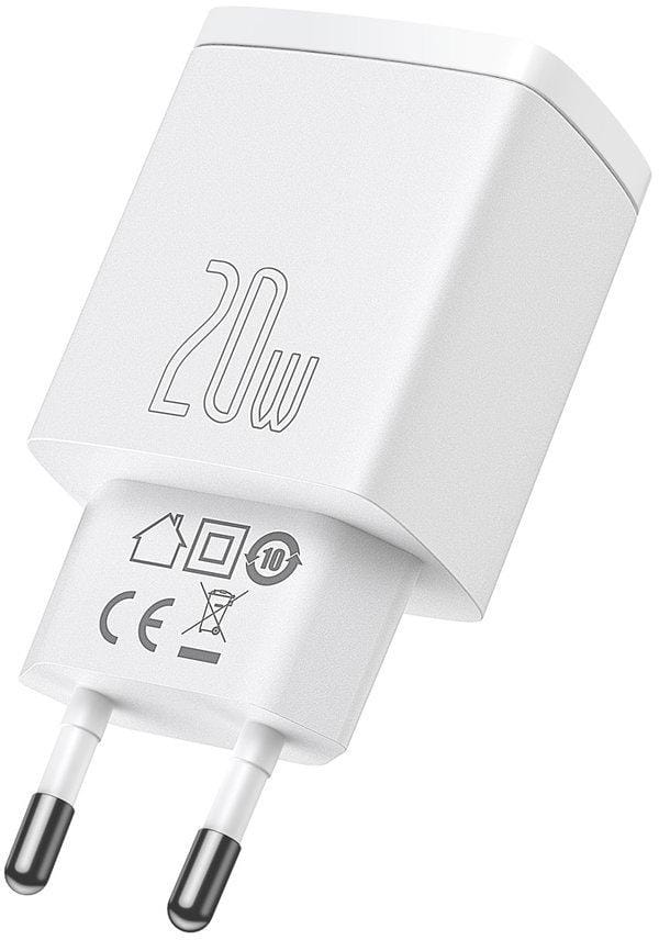 ŁADOWARKA SIECIOWA Baseus Compact Quick Charger CCXJ-B02 20W 1x USB-A 1x USB-C PD 3.0 QC 3.0 BIAŁA
