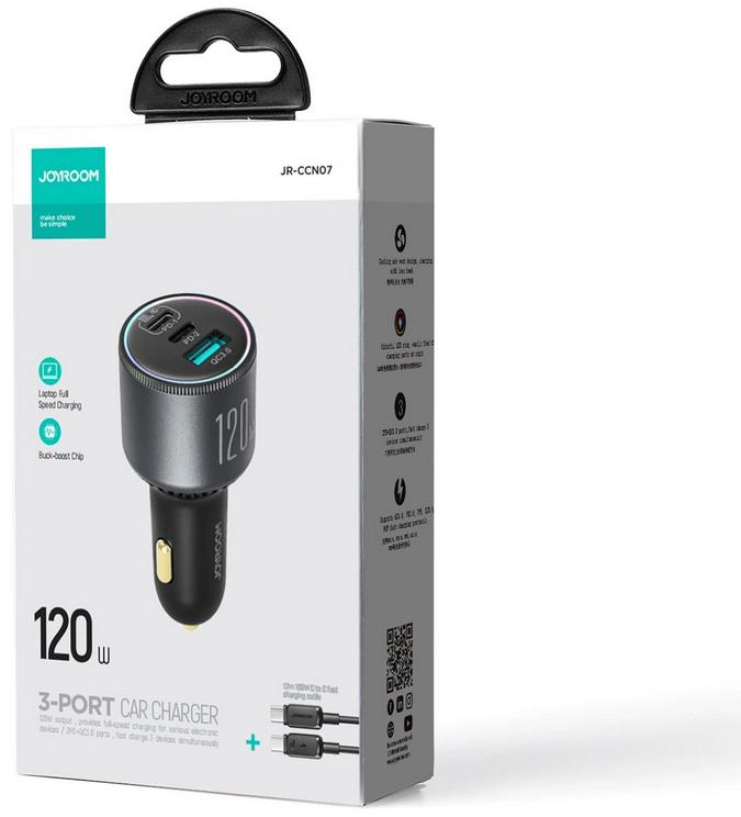 Ładowarka samochodowa Joyroom JR-CCN07 120W 5.0A PD 3.0 QC 3.0 1x USB-A 2x USB-C + kabel