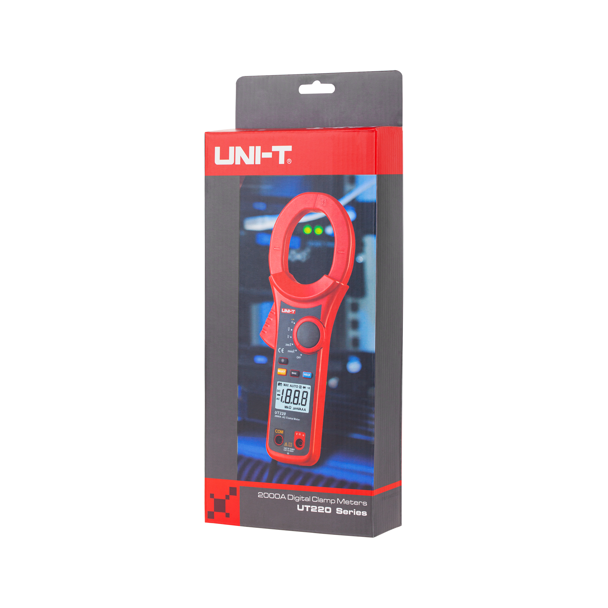 UT220 wyposażony jest w automatyczną zmianę zakresów pomiarowych, co upraszcza obsługę. Funkcje takie jak zamrożenie ostatniego wskazania i zapis wartości maksymalnej zwiększają wygodę pracy, umożliwiając łatwe śledzenie wyników. Podświetlany ekran LCD zapewnia czytelność wyników nawet w słabym oświetleniu, a automatyczne wyłączanie oraz wskaźnik niskiego poziomu baterii dbają o efektywność użytkowania i dłuższą żywotność urządzenia.