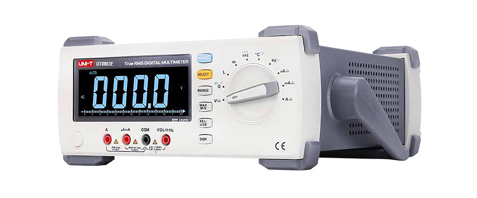 Miernik UT8803E oferuje funkcję True RMS, która zapewnia dokładne pomiary nawet przy zniekształconych sygnałach. Urządzenie wyposażone jest w funkcję automatycznej i ręcznej zmiany zakresów pomiarowych, pomiar wartości względnej oraz zapis wartości MAX/MIN, co ułatwia analizę i śledzenie zmian w obwodach. Dodatkowo, UT8803E umożliwia testowanie diod, tranzystorów hFE oraz tyrystorów SCR, co poszerza jego zastosowanie w diagnostyce komponentów elektronicznych.