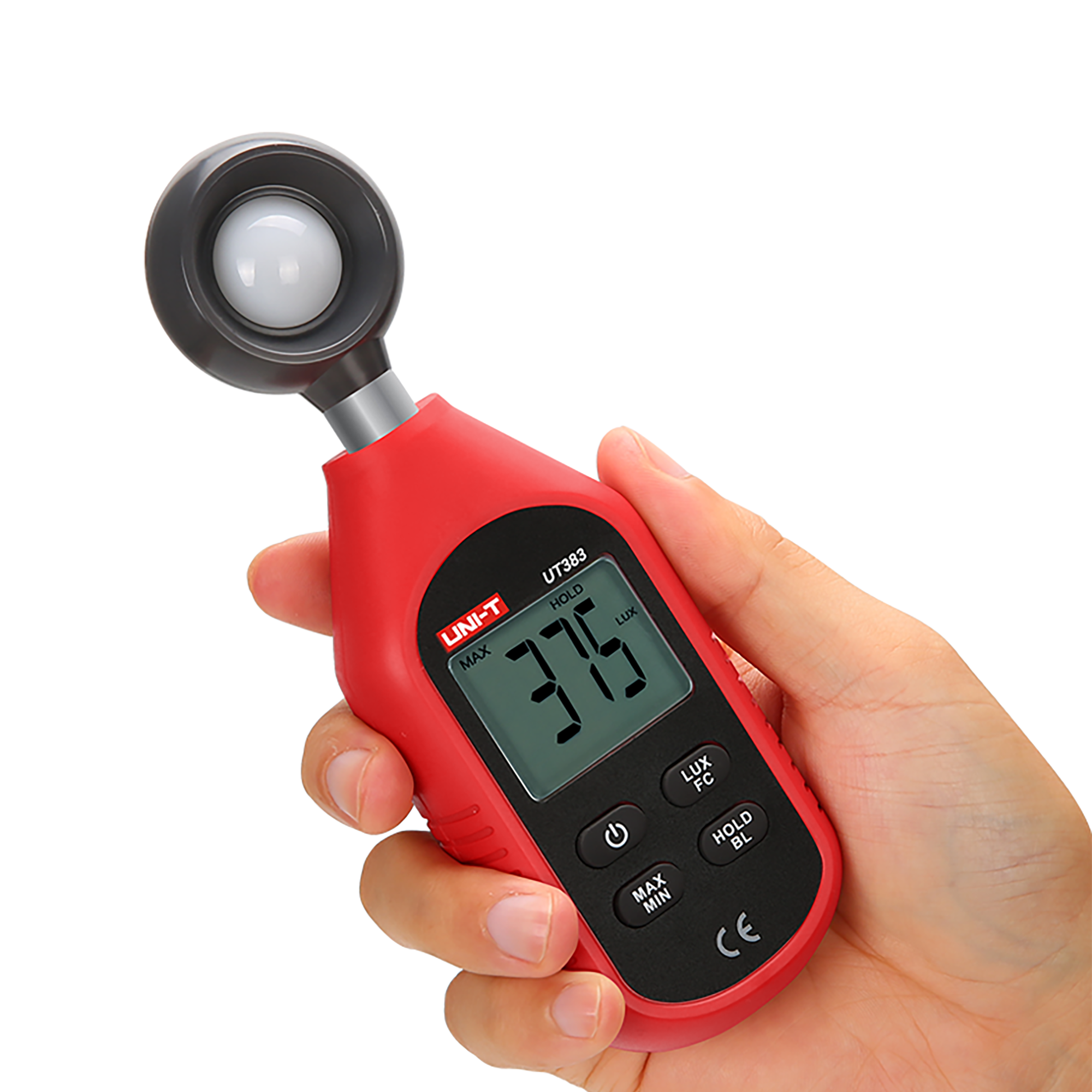 UT383 został wyposażony w funkcję pomiaru w dwóch jednostkach: luksach (lx) oraz kandela (cd), co umożliwia dostosowanie pomiarów do specyficznych potrzeb użytkownika. Urządzenie oferuje także funkcję zapisu wartości maksymalnej i minimalnej (MAX/MIN) oraz zamrożenie ostatniego wskazania, co ułatwia analizę wyników. Podświetlany ekran oraz funkcja automatycznego wyłączania zwiększają komfort użytkowania, a informacja o przekroczeniu zakresu pomiarowego zapewnia dodatkowe bezpieczeństwo podczas pracy.