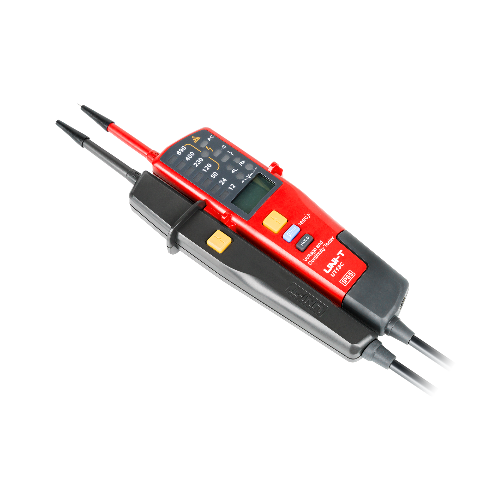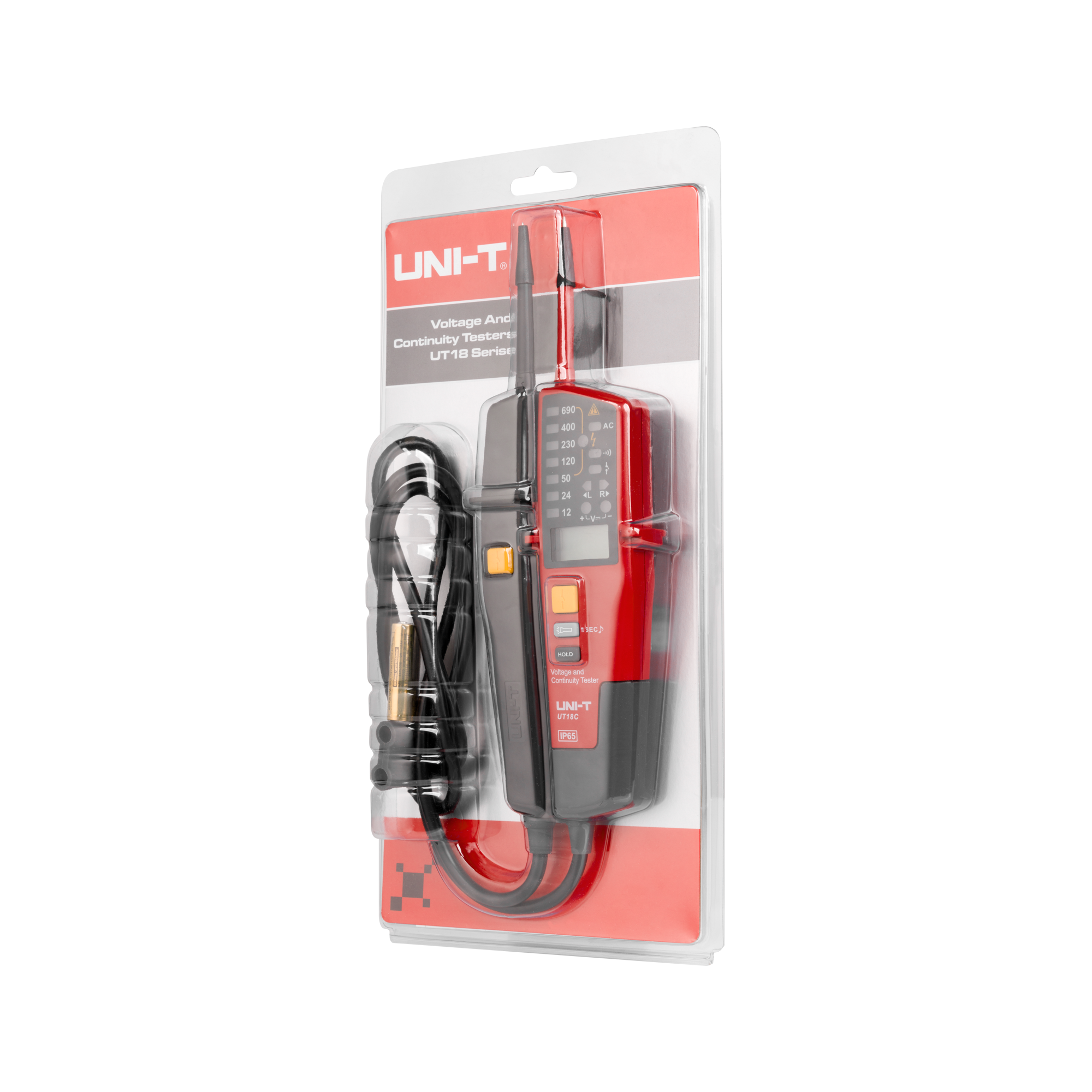 UT18C oferuje wskaźnik LED do pomiaru napięcia w szerokim zakresie od 12 V do 690 V, co umożliwia szybkie i dokładne sprawdzenie obecności napięcia w obwodach elektrycznych. Tester umożliwia również detekcję kolejności faz w instalacjach trójfazowych, a także test ciągłości obwodu z użyciem sygnału dźwiękowego i wskaźnika LED. Funkcja testu RCD (wyłączników różnicowoprądowych) oraz detekcja polaryzacji dodatniej i ujemnej sprawiają, że UT18C jest kompleksowym narzędziem do diagnostyki instalacji elektrycznych.