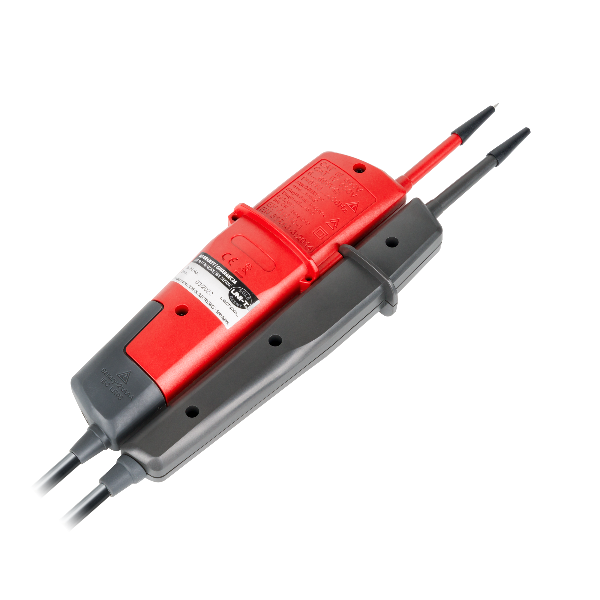 UT18C charakteryzuje się wysoką odpornością na trudne warunki pracy, potwierdzoną klasą ochrony IP65, co oznacza pełną odporność na pył oraz ochronę przed strumieniami wody. Miernik zasilany jest dwoma bateriami 1,5 V (R03), co zapewnia długotrwałą i niezawodną pracę. Jego ergonomiczna konstrukcja oraz kompaktowe wymiary sprawiają, że jest wygodny w użytkowaniu i łatwy do przenoszenia.