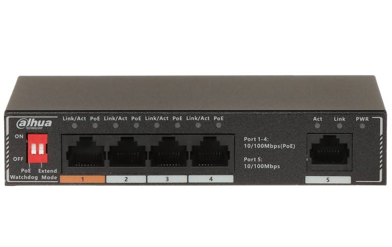 - zasięg PoE: 100m (tryb normal), 250m (wł. tryb Extend)