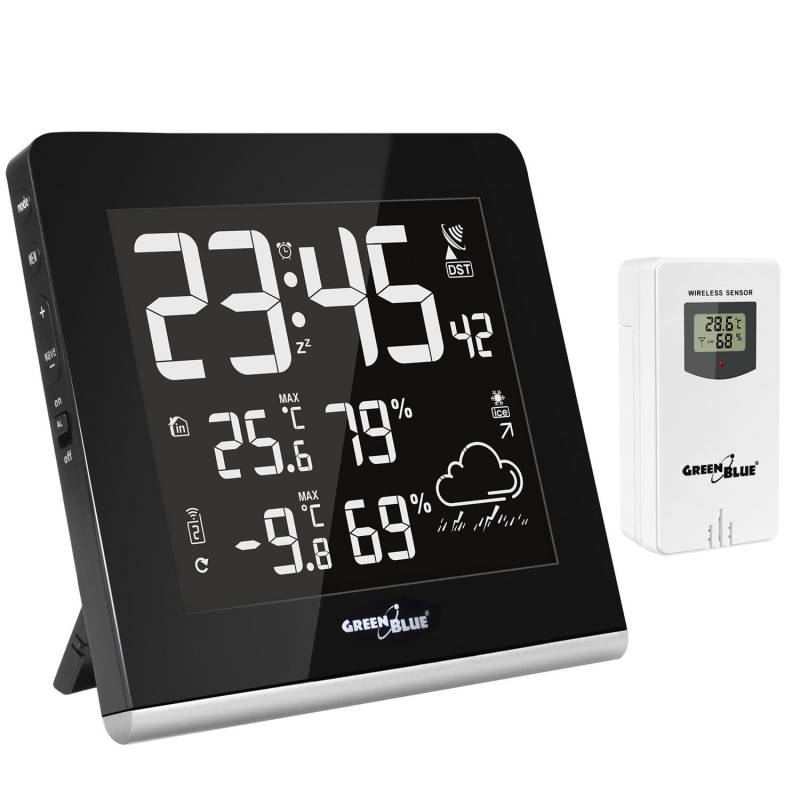- Stacja pogody bezprzewodowa 9 kolorów GreenBlue GB151 DCF VA LCD