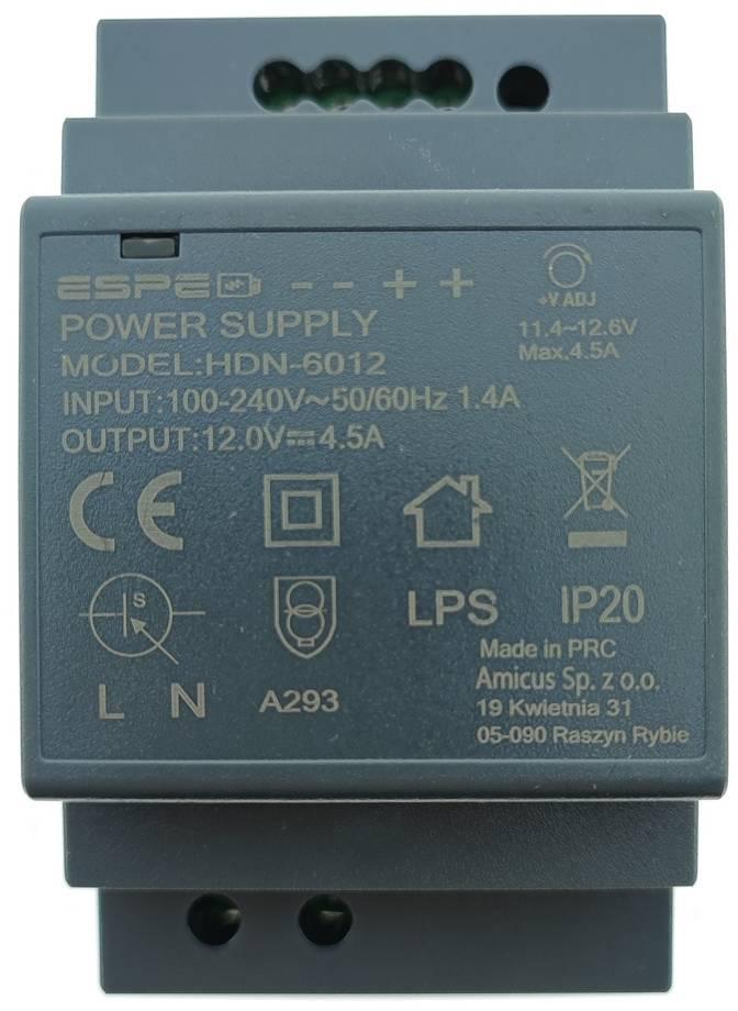 ZASILACZ IMPULSOWY NA SZYNĘ DIN ESPE HDN-6012 12V/54W/4.5A